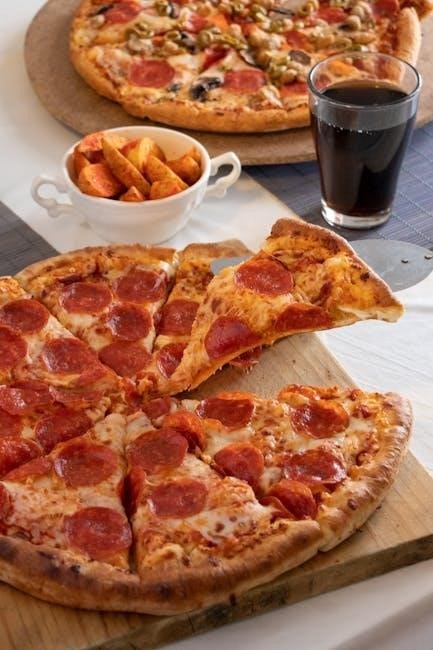 Look for bubbly‚ golden-brown cheese and heated-through toppings as indicators of doneness. A final check to ensure the crust is firm and golden brown will guarantee a satisfying pizza experience.